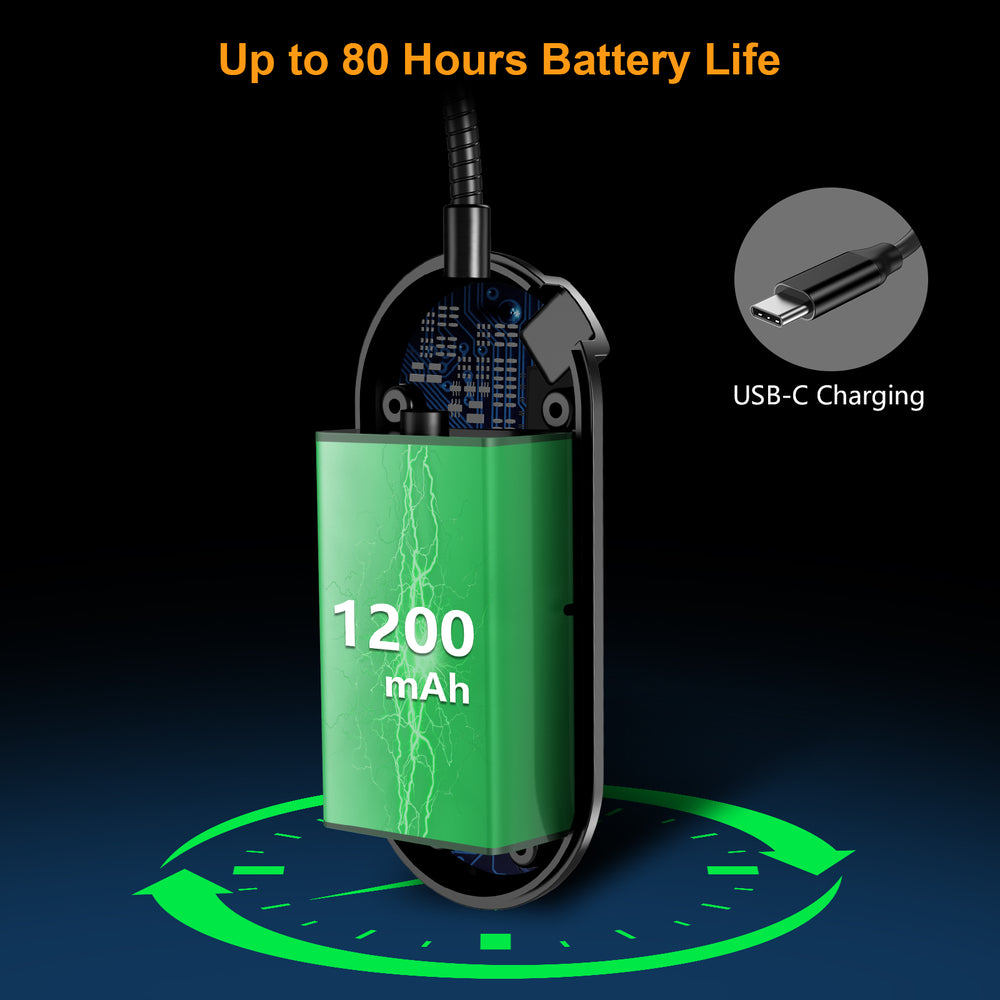 💡【Large-Capacity USB Rechargeable Battery】Built-in 1200mAh large-capacity battery, the light can provide 8-80 hours of long-lasting lighting time (depending on the brightness). 4 LED indicators show the battery level in real time, and can be charged on power sources such as mobile phone/computer/laptop. Fully charges in just two hours with the included Type-C cable.