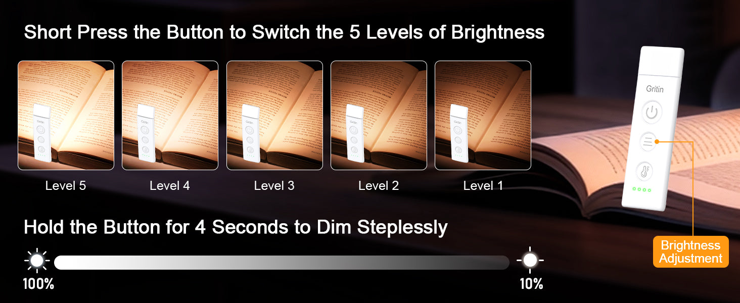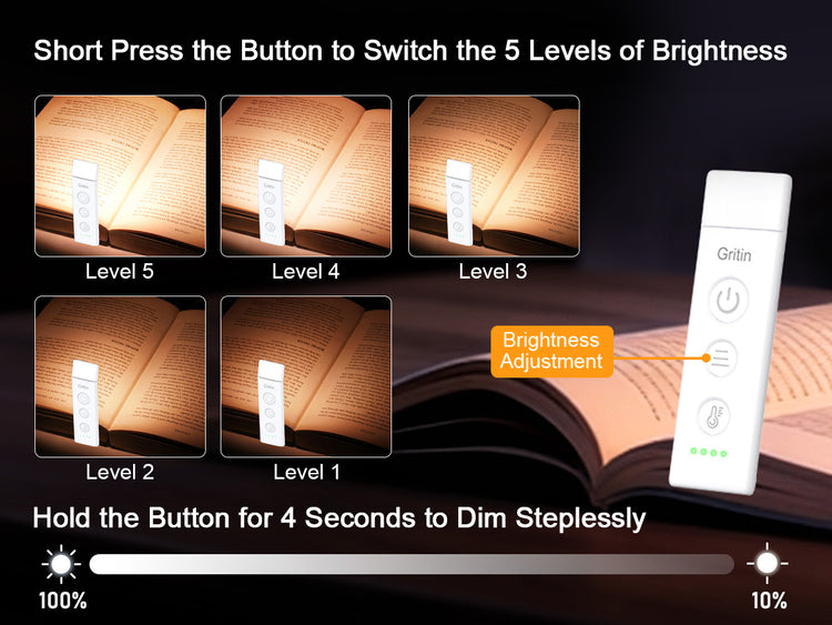 Stepless Dimming and 3 Color Modes: Adjust the brightness from 100% to 10% by long press button to suit different reading environment. Simple switch 3 color temperature lighting modes by clicking the button;mixed color (9 LEDs on), cool white (5 cool white LEDs on),...