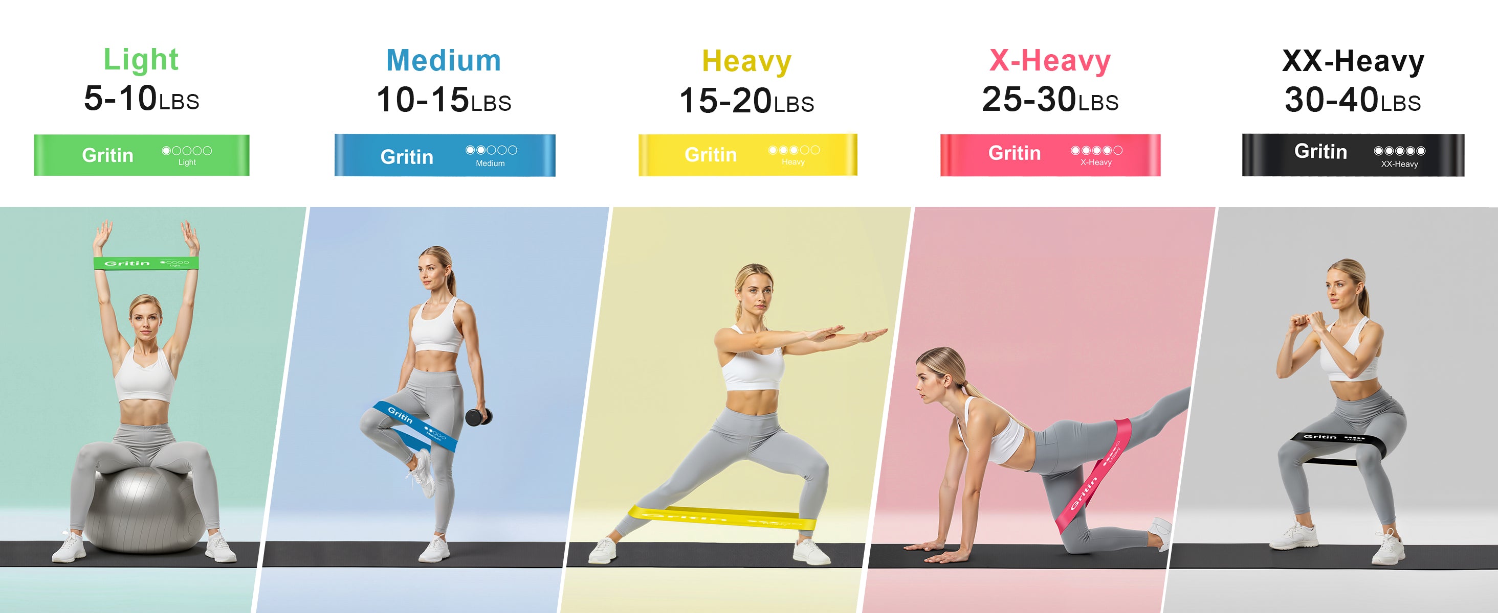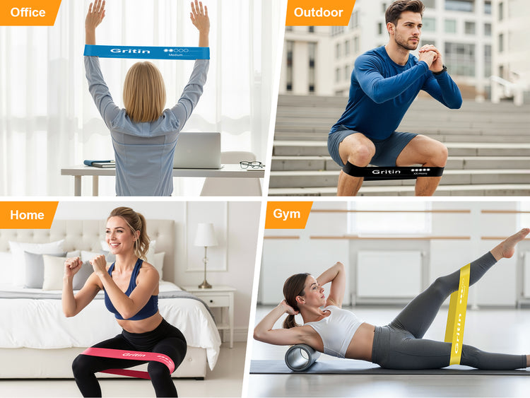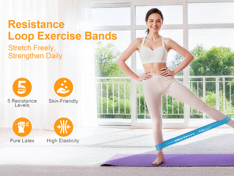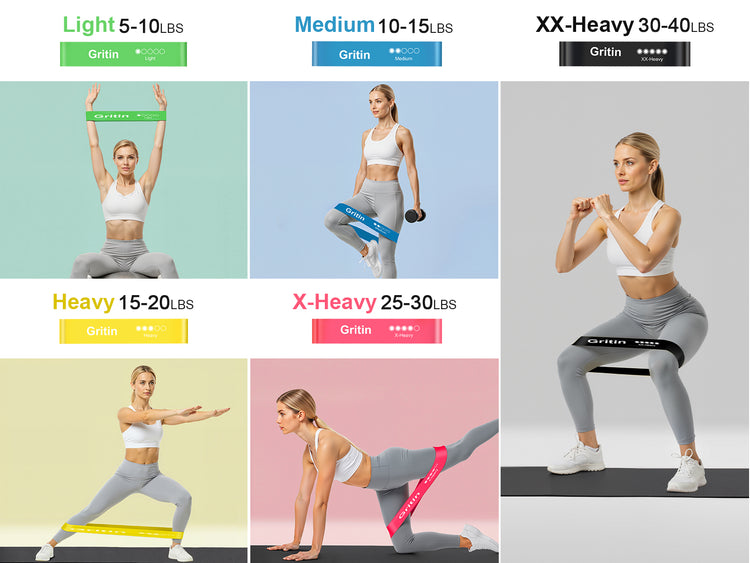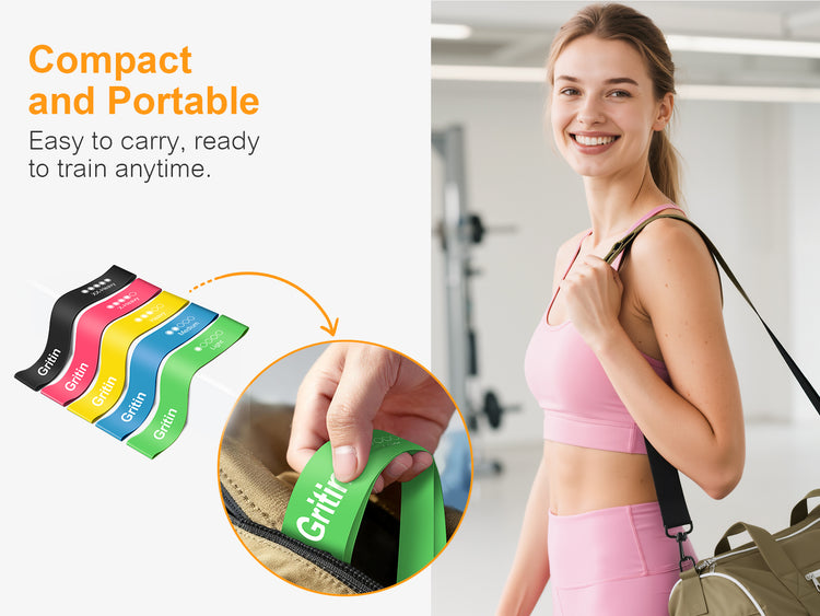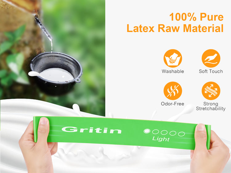 【What You Get】5X Gritin resistance bands with different level , 1X portable storage bag and 1x Manual in six languages.