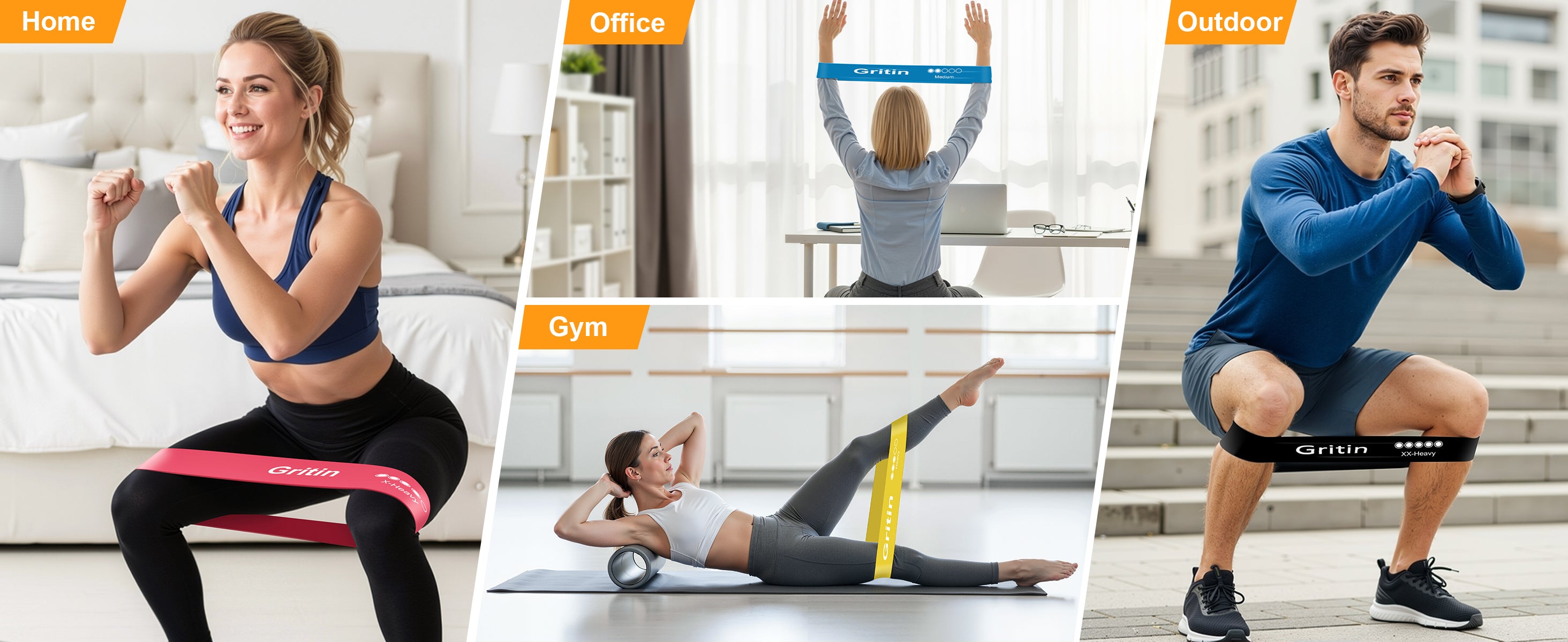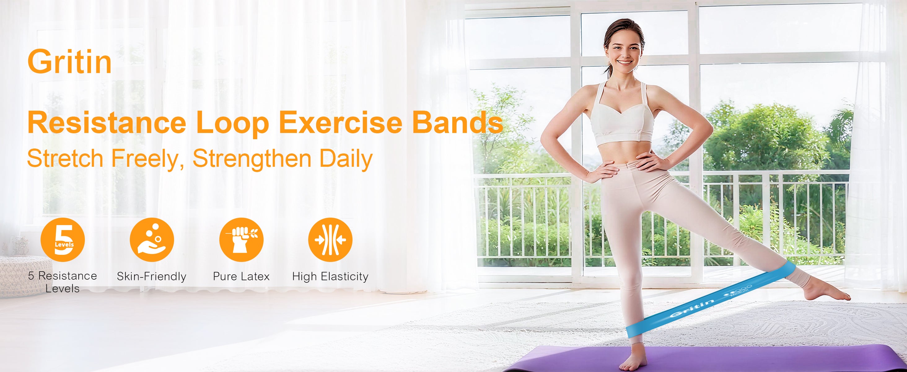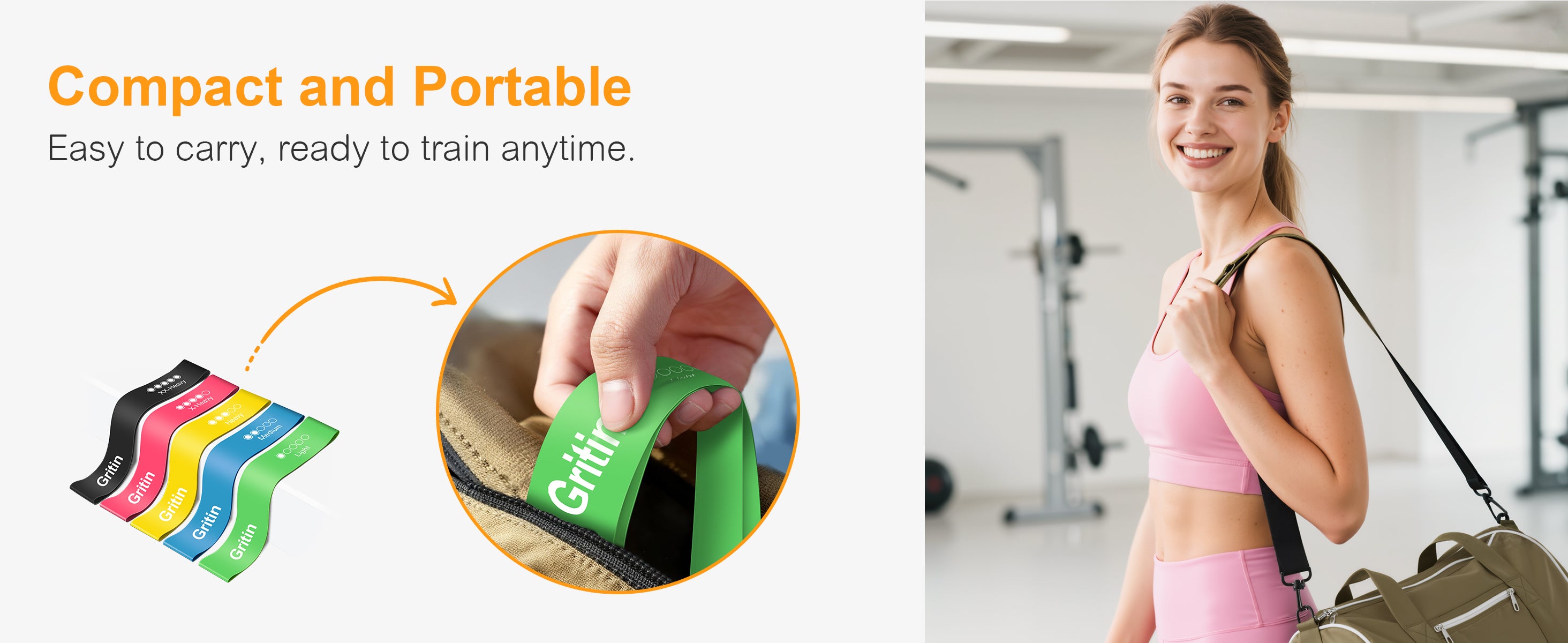 【What You Get】5X Gritin resistance bands with different level , 1X portable storage bag and 1x Manual in six languages.